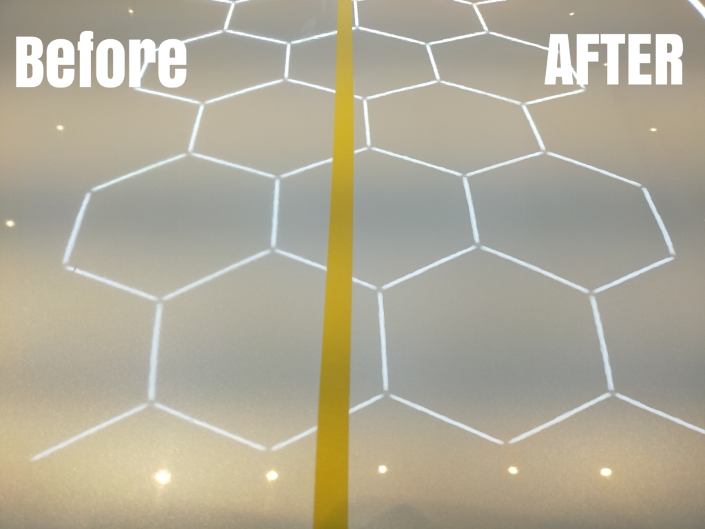 いつも大変お世話になっているショップ様からのセラミックコーティング施工ご依頼です。ボディー肌の状態はけして良いとは言えず白だからと言って軽視は厳禁です!!画像を見比べるとハニカムライト、スポットライトの映りぐあいはまったく違いますね!当社は鏡面研磨を売りにバフやコンパウンドも自社にて開発、製造をしており濃色車などの初期研磨→中間→仕上げなどといった工程をふまずに一発で仕上げることが可能となっておりランニングコストの削減や作業効率のUPにつながっております。