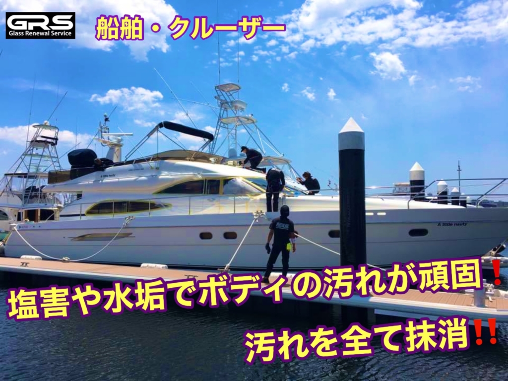 船、クルーザー 水垢や塩害などによるボディの劣化を復元‼️GRSの再生技術で