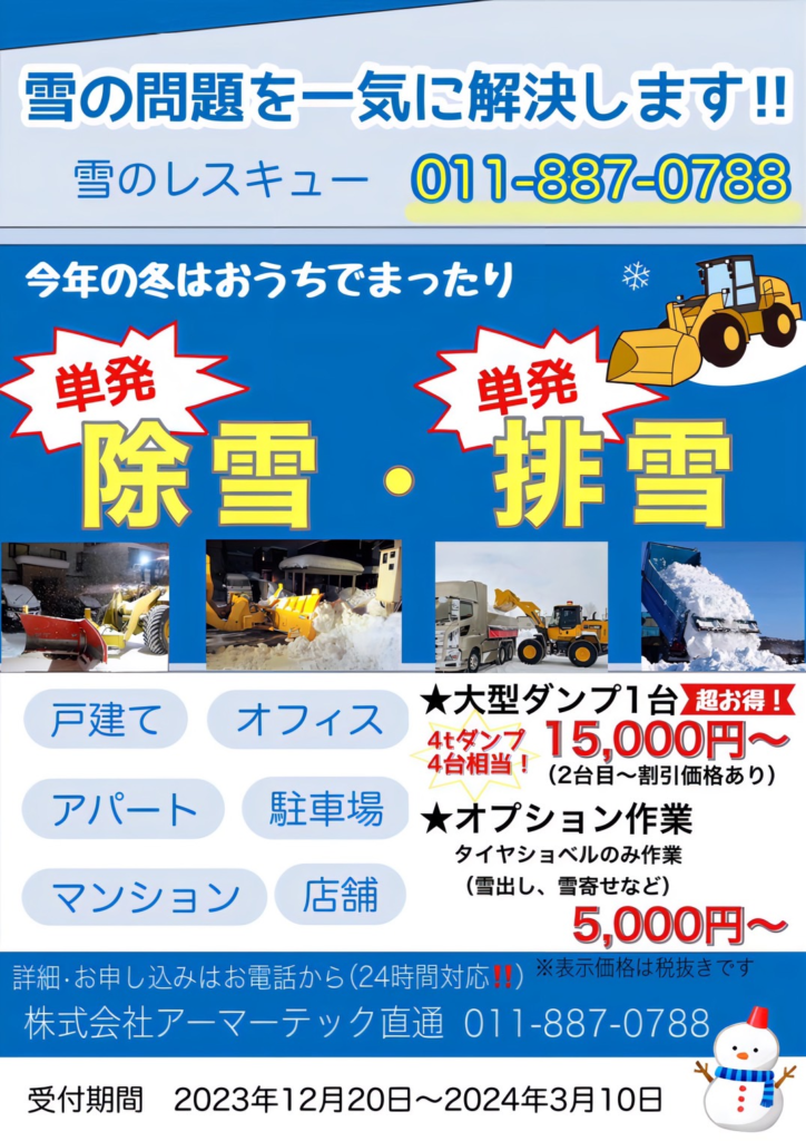 今年度から、札幌市および札幌市近郊で除雪・排雪を行う、